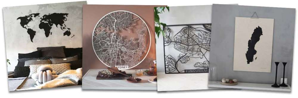 Vackra kartor i trä att sätta på väggen